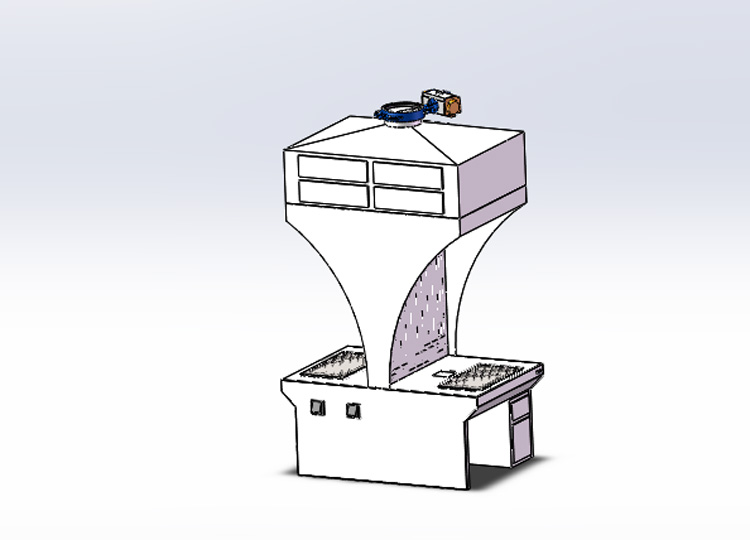 The dual station workbench is a universal workbench. The unique desktop design is perfect, and the top is equipped with an activated carbon adsorption system. The negative pressure generated by the smoke and dust through the fan enters the dust removal pipeline through the exhaust port, and is collected in the pulse dust collector for filtration treatment. The purified air is discharged through the air duct and the fan.
