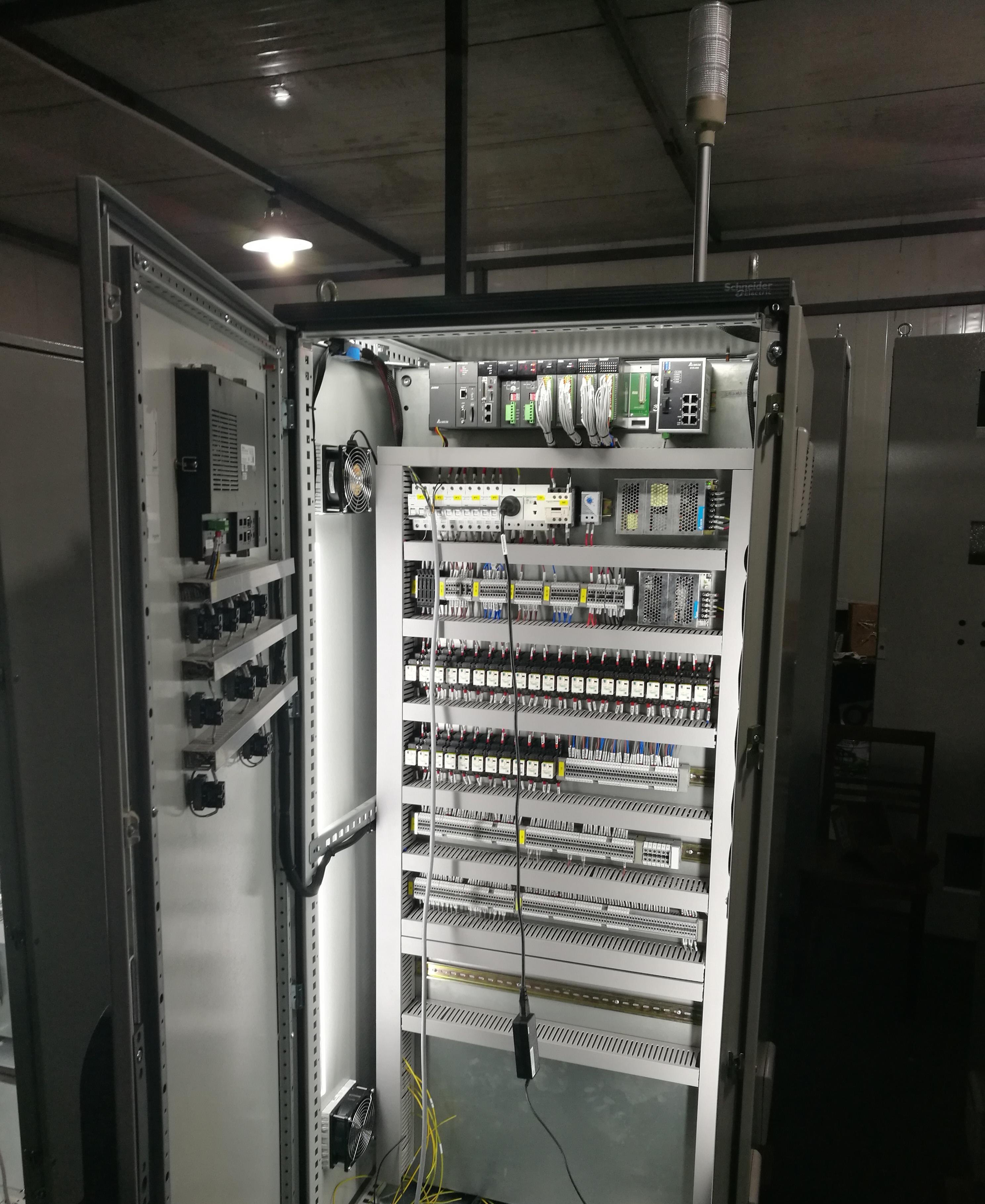 整套生产线采用了三菱PLC自动化控制,具备CCTV监控系统和大数据中心,能够采集所有设备的运行数据,具备运行故障报警功能,更好的为业主分析生产线的运行数据,计算出运行成本,调优运行节奏等。