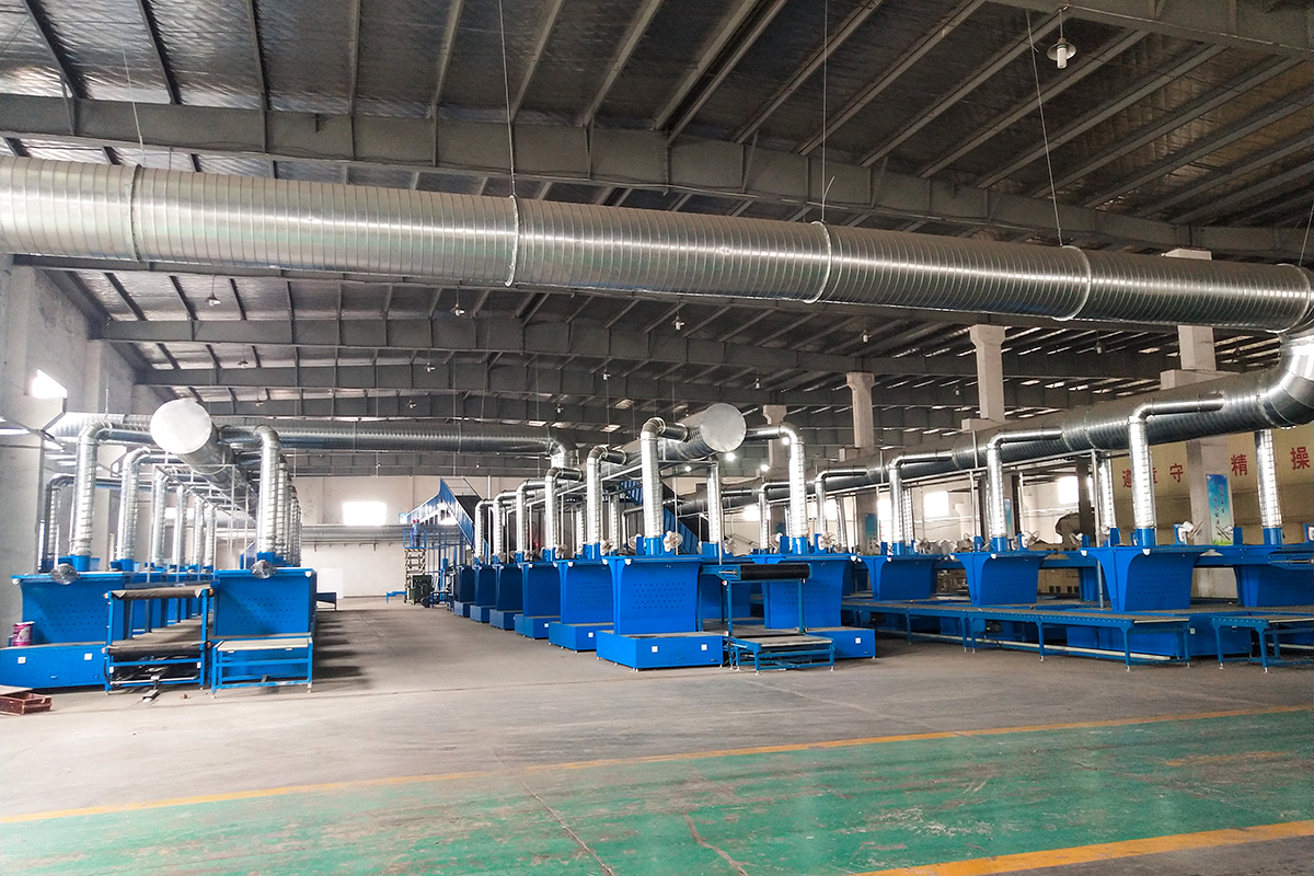 整个生产线紧凑合理的布局及密封结构搭配负压除尘的设计,能够充分有效地抑制粉尘泄漏,实现无尘化工作;采用滤筒脉冲除尘,有效解决粉尘问题,符合环保要求。